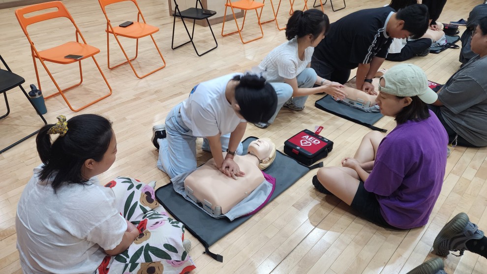 이번 안전교육은 광주광역시청소년삶디자인센터 청소년지도자 선생님들과 함께 심폐소생술 교육을 실시 하였습니다.